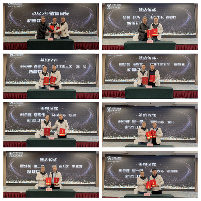 在隨后的市場經(jīng)營及品牌推廣工作匯報環(huán)節(jié)中,市場本部中心、安徽江南大區(qū)、安徽江北大區(qū)、江浙大區(qū)、鄂豫大區(qū)、云川渝大區(qū)、北方大區(qū)、品牌管理部的代表共同總結(jié)2024年市場環(huán)境及指標完成情況。會議指出,市場部門要以國家“數(shù)字化”戰(zhàn)略為導(dǎo)向,以“智慧引領(lǐng)未來”為主線,制定行之有效的產(chǎn)品推廣計劃并予以貫徹執(zhí)行,是為2025年的重點工作。匯報結(jié)束后,市場各大區(qū)舉行了2025年銷售目標簽約儀式。