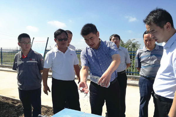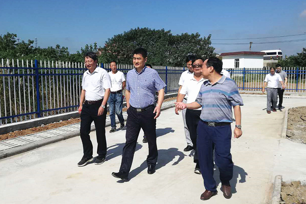 和縣縣委書記戴瑞(前排左二)視察功橋鎮(zhèn)污水處理站