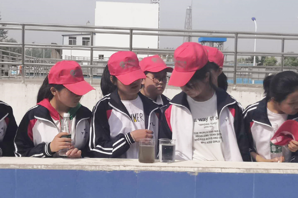 值得一提的是,在進廠污水與出廠清水的水樣對比展示中,同學們驚呼太神奇了,進廠的污水呈黑色、有刺鼻異味,但出廠的水質(zhì)看上去與生活中的自來水無異。通過此次參觀學習,同學們了解了污水處理的基礎(chǔ)原理和工藝流程,深感他們喝的每一滴水都來之不易,他們表示要做一名節(jié)約用水、保護水環(huán)境的小公民。
