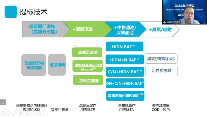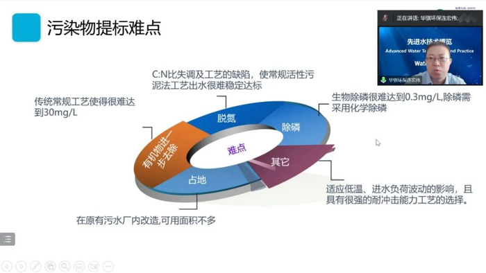 針對(duì)污水廠提標(biāo)改造面臨的難題,連宏偉介紹了華騏環(huán)保的系統(tǒng)解決方案: